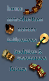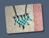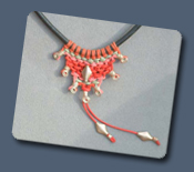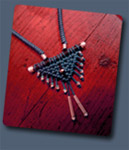 | Earlier I was using mostly deep somber colors, my materials were restricted to leather thongs and black waxed thread with brass elements. |