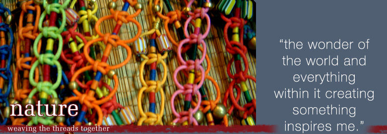 | Since I have changed locations I think more elements are creeping into the work I do. I take my thread from nature. |